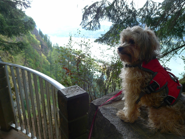 DeleteFirst I love your pics at Multnomah Falls - so fun you took N there for a hike. That ledge looks scary - and what a silly chipmunk for eating Cheetos. Mr. N does such a great job with his commands and I know he's in total control as you're training is rock solid!