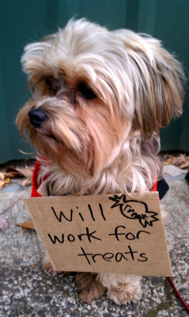 As for the extra water, I try not to carry more than what will fit in my (small) purse. Half my purse is usually devoted to dog stuff (treats, clicker, bags, citronella spray) anyway, I don't have room for more! What I usually end up doing is carrying a collapsible dog bowl and asking cafes/stores for some water.
