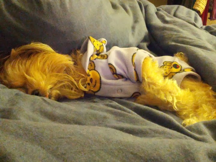 Our usual winter problem is keeping him from being wet and cold which is the most miserable combination. I still haven't found the perfect coat yet. So we layer. He wears a fleece under a rain coat. I kind of want to get him a hat. Even though the rest of him is mostly covered, his head still gets wet.
