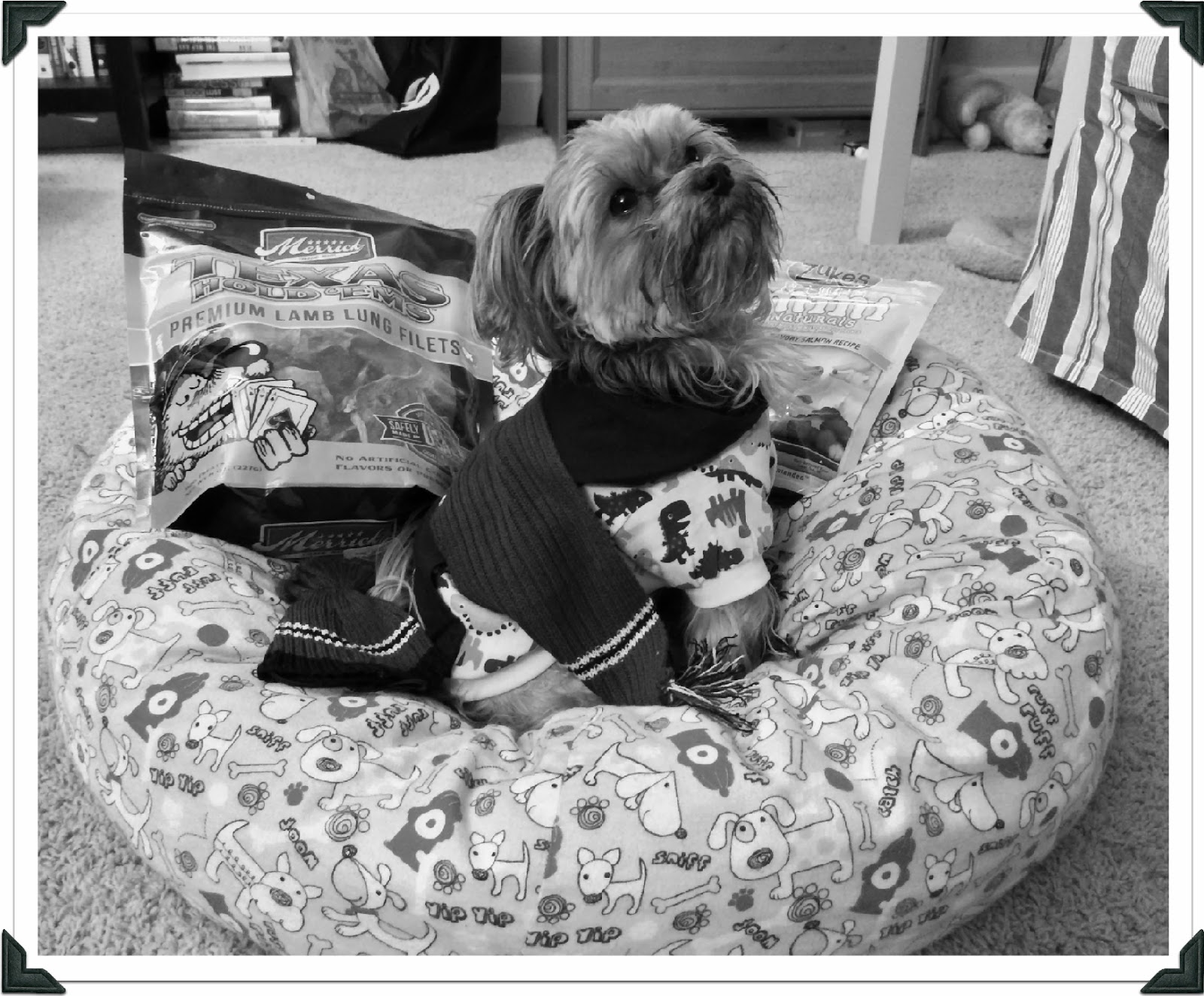 DeleteI say it is still a PAWsome Barkday :-) Golden LOVE the pattern of your bed. Happy Black n White Sunday. Lots of Golden Woofs, Sugar