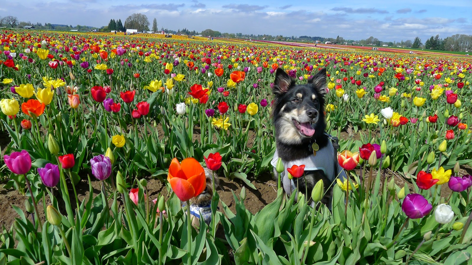 Mr. N and his partner-in-crime, Sage set out on another adventure and found... tulips! Rows and rows of gorgeous flowers at the Wooden Shoe Tulip Farm in Woodburn, Ore. Dogs on leash are allowed.