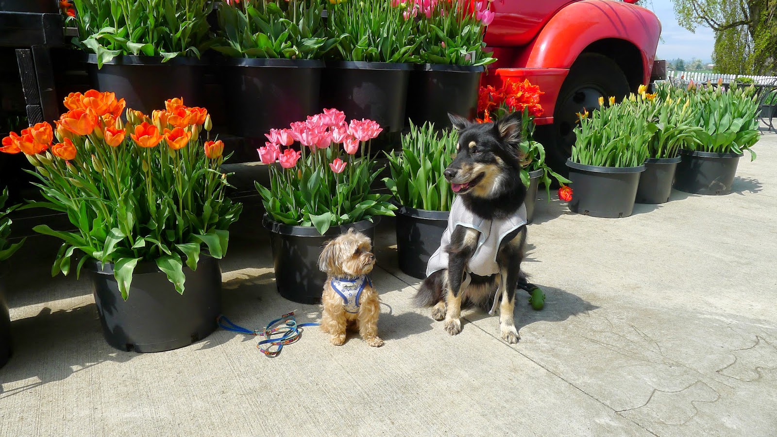 It was the perfect day for walking around and looking at flowers. The dogs enjoyed frolicking in the sun and accepting admiration from passersby.