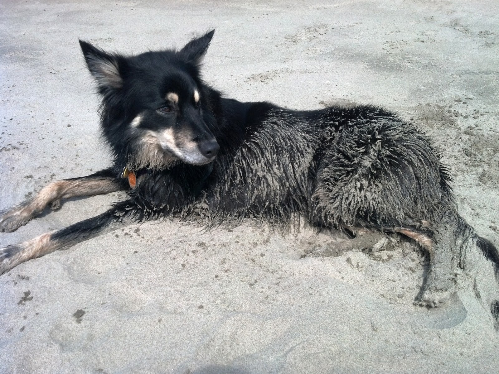 Haha..I'd forgotten Sage had managed to 'sand' herself. Good thing she doesn't mind going in the surf and getting a lot of it off. AND, you got a photo of the birds that drove her nuts! Fun trip!