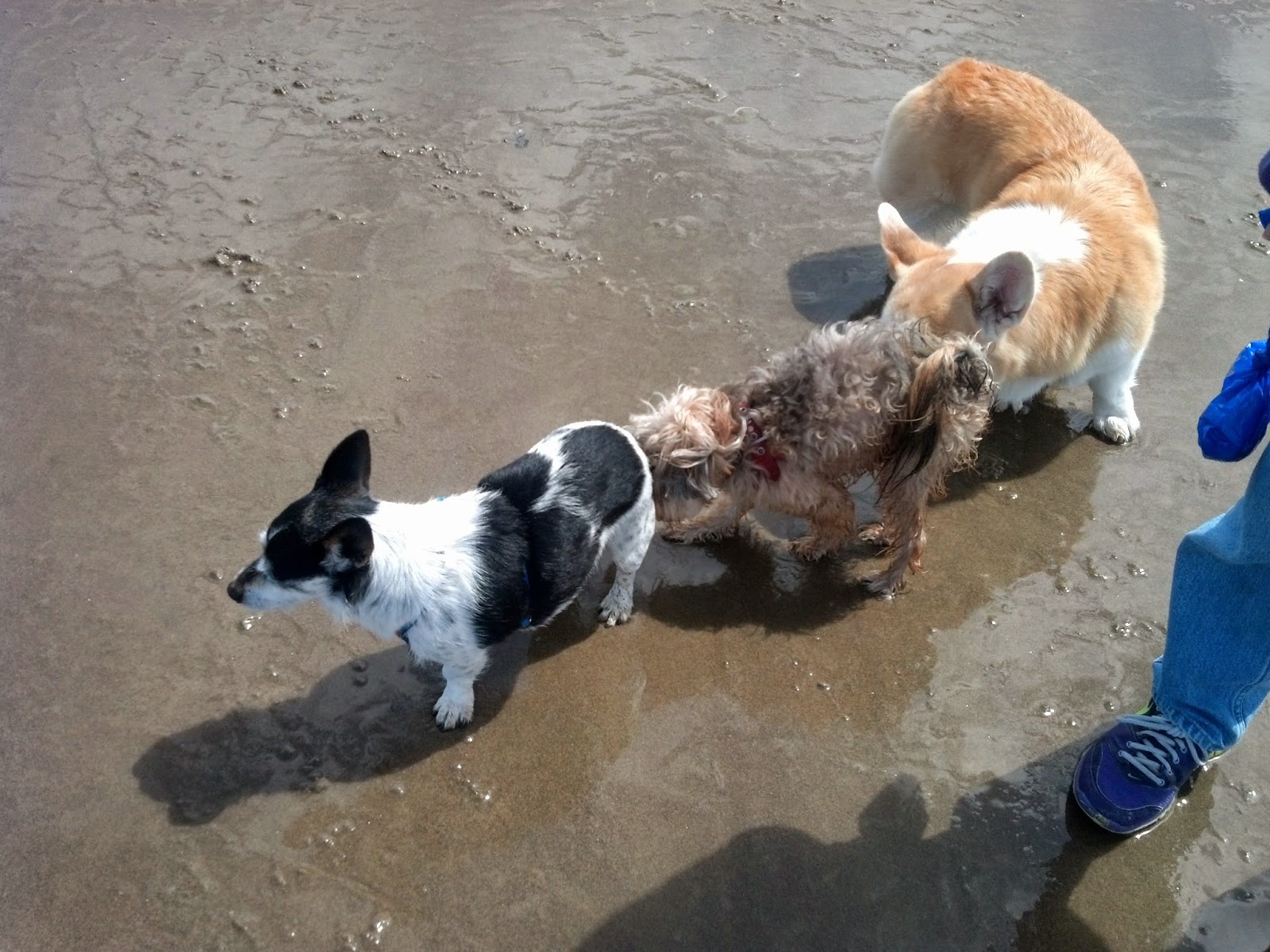 Oregon has liberal leash laws along most of the coastal beaches so we ran into a lot of other dogs happily wandering the beach. Mr. N participated in a sniffing train.