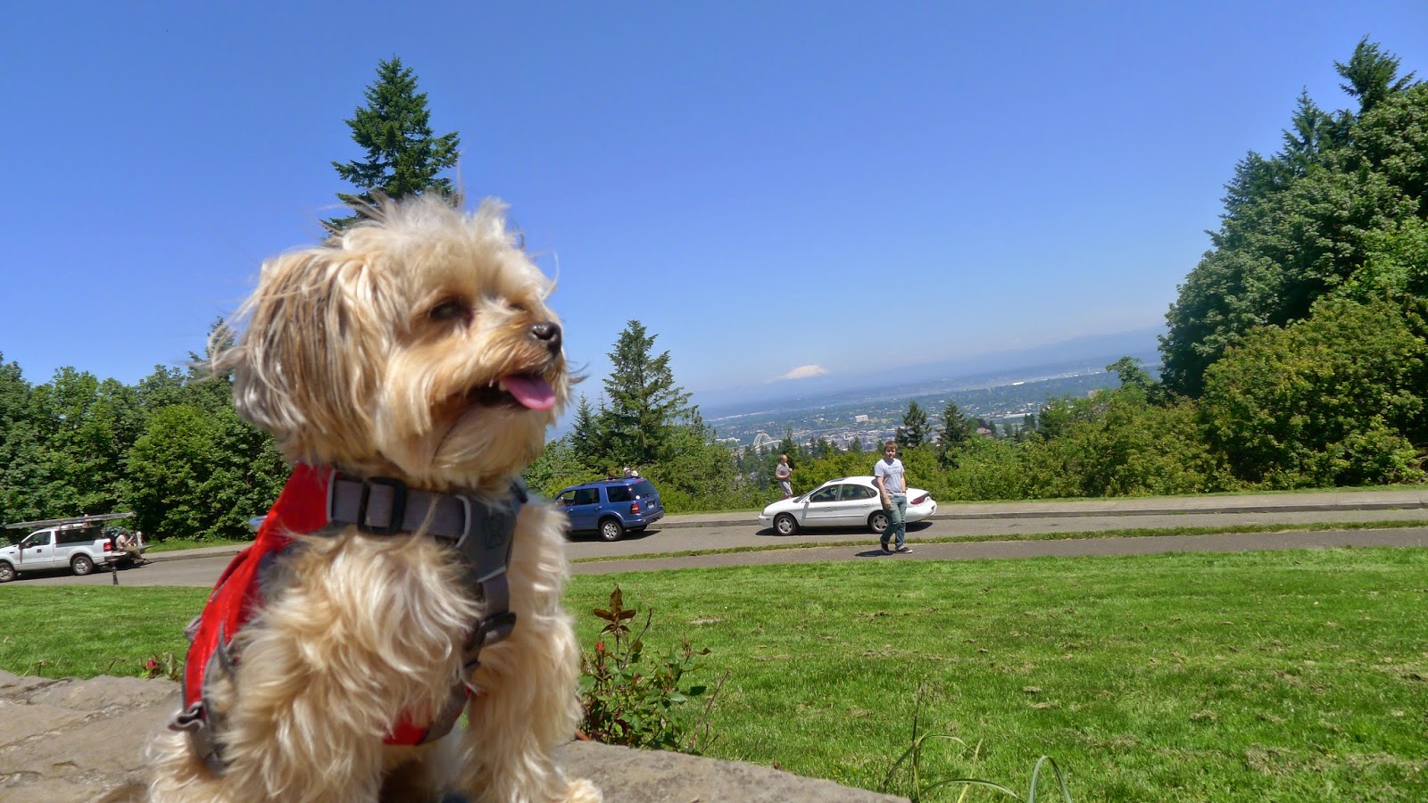 Well, another check on the Portland side of the awesome Cascadian cities board- a five mountain day! I suppose if I counted up all the Olympic and Cascade peaks we can see we'd have more but that's a lot of majestic volcanos from one spot! And a dog park at the summit? I love it! Time for humans to catch their breath while the fit dogs keep doing their thing.