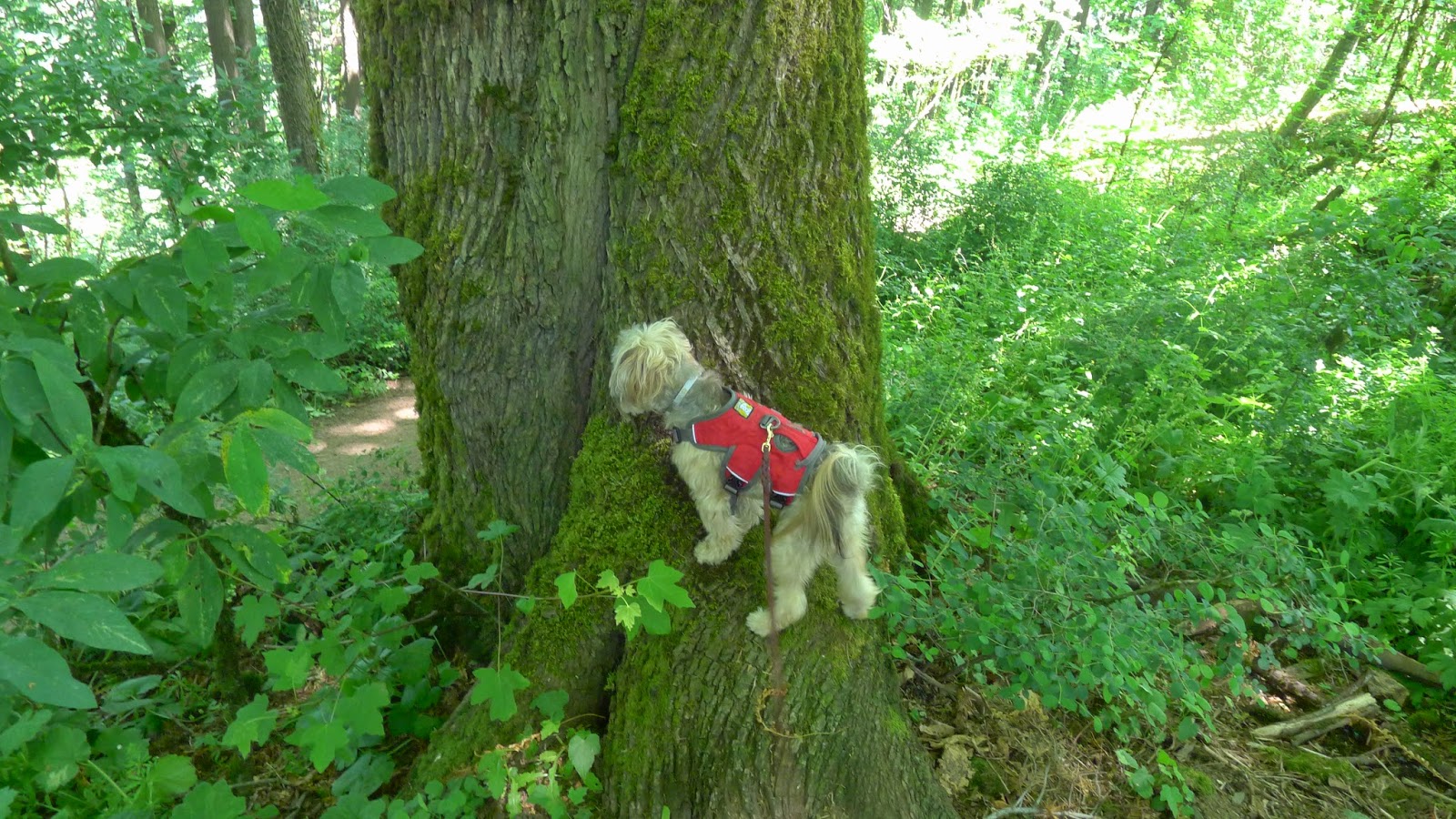 On the way back, Mr. N tried to climb this tree. Thwarted by a squirrel once again!