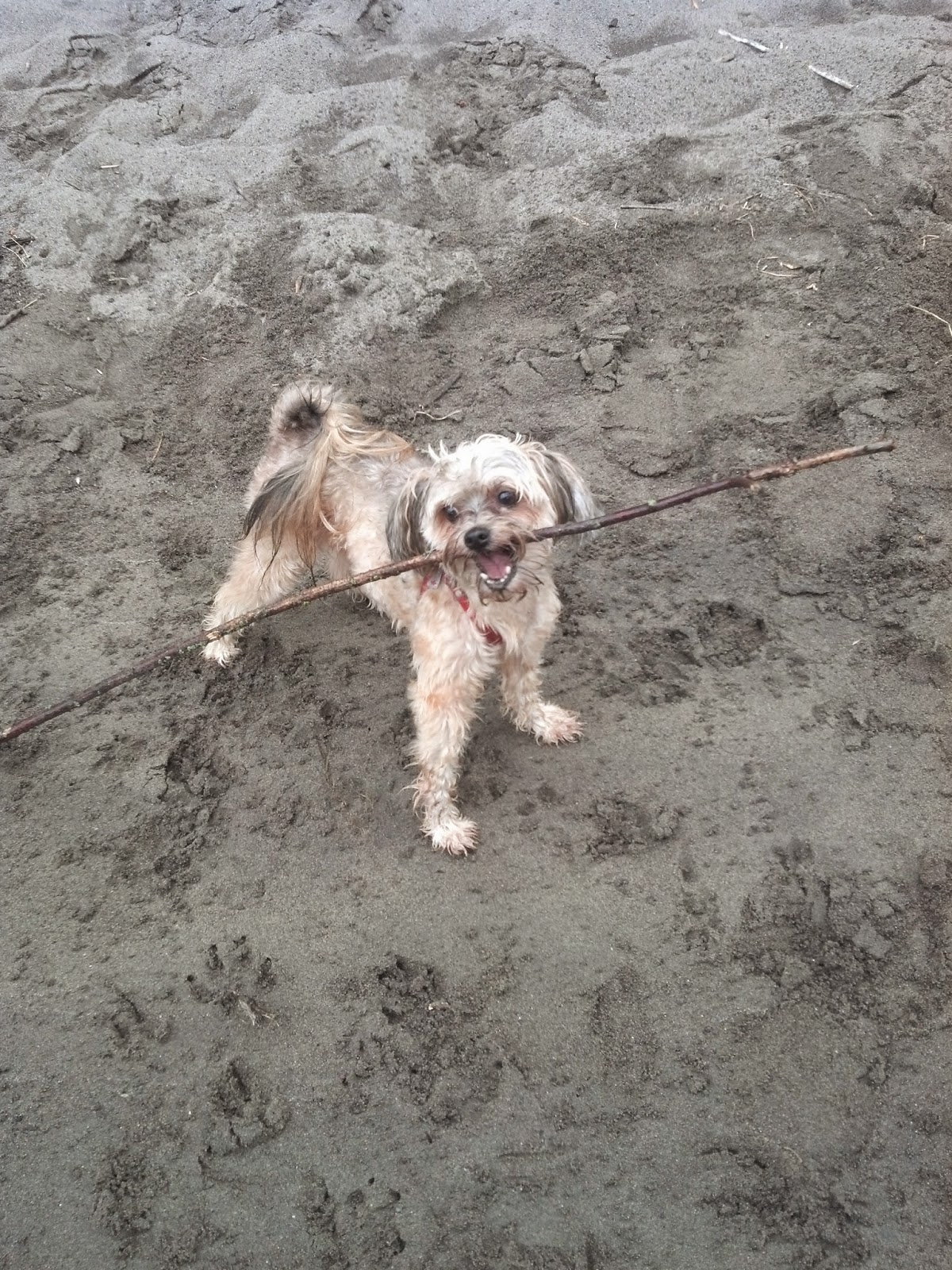 When Sage brings back a stick from the river, he instantly lets her know that this is now his stick and will stay his stick for as long as he is interested.