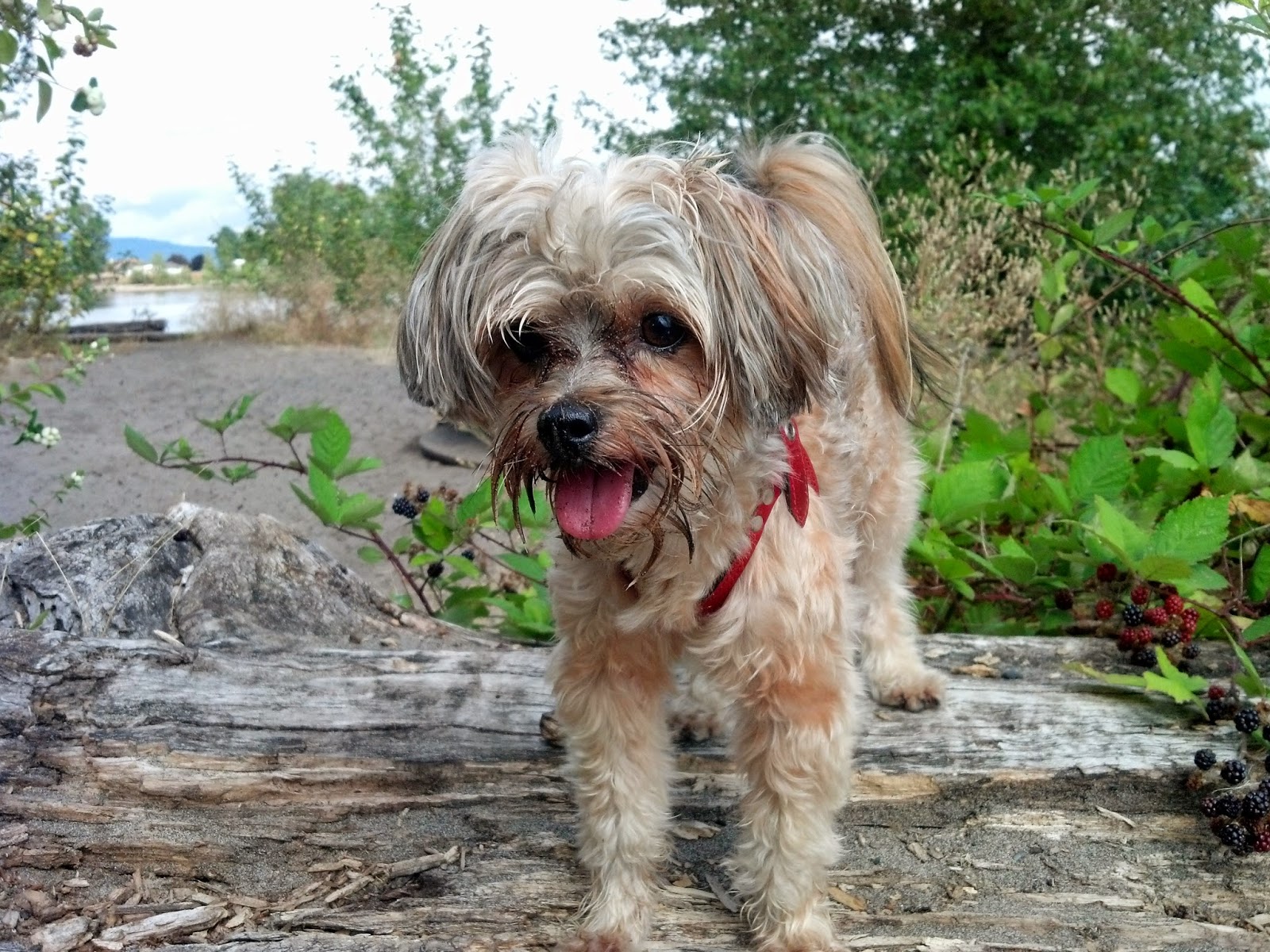 It was a hotter-than-predicted day so all three dogs were panting by the time we reached the river. Sage and Mort quickly remedied that by plunging into the river which was an attractive chocolate milk color that day.