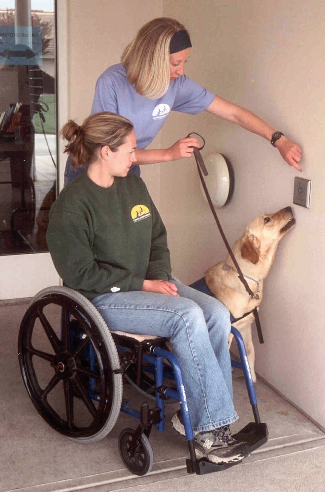 Our dogs learn a variety of things besides basic obedience. This includes pulling a wheelchair, tugging doors/drawers/clothing, turning lights on and off, pushing automatic door buttons or drawers, and alerting to someone calling the handlers name to describe a few.
