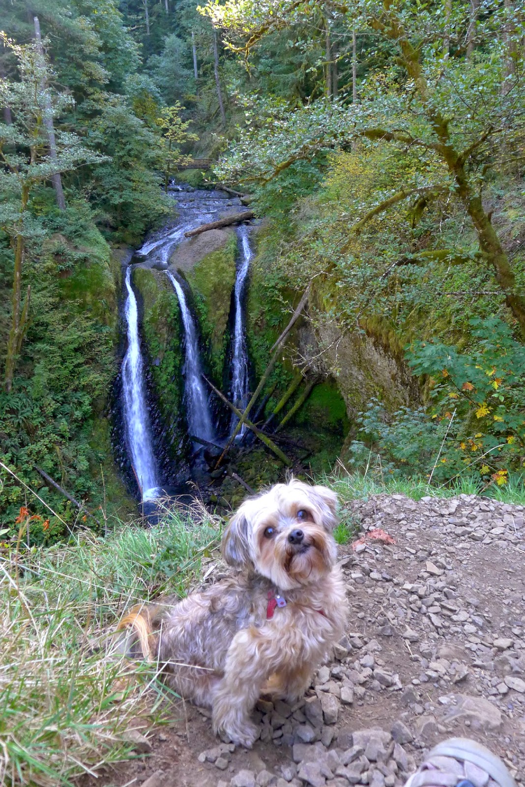 Those falls are beautiful! I think Mr. N has the advantage of being low to the ground, and having that "four paw drive" as my hubby and I call it sometimes! But I think his energy level is probably his biggest advantage! That looks like such a great hike, and I bet those tourists really enjoyed seeing the dogs posing like that.