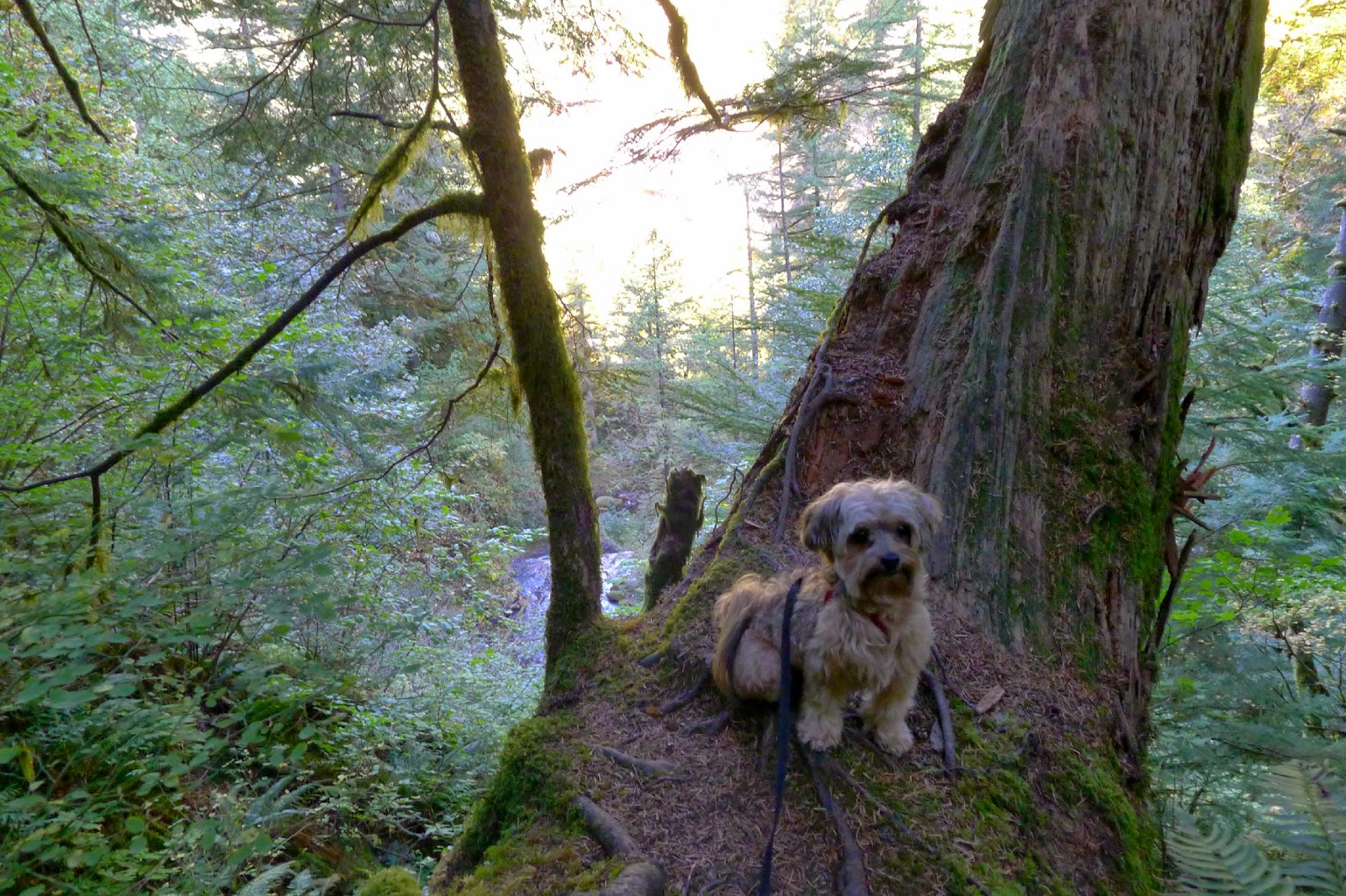 After Mr. N recovered from his raisin incident, we set forth with Sage to explore Triple Falls. We made a quick stop at Multnomah Falls for some food (the lodge doesn't allow dogs so we ate outside) and for a picture. I think the dogs ended up in some tourists' photos.