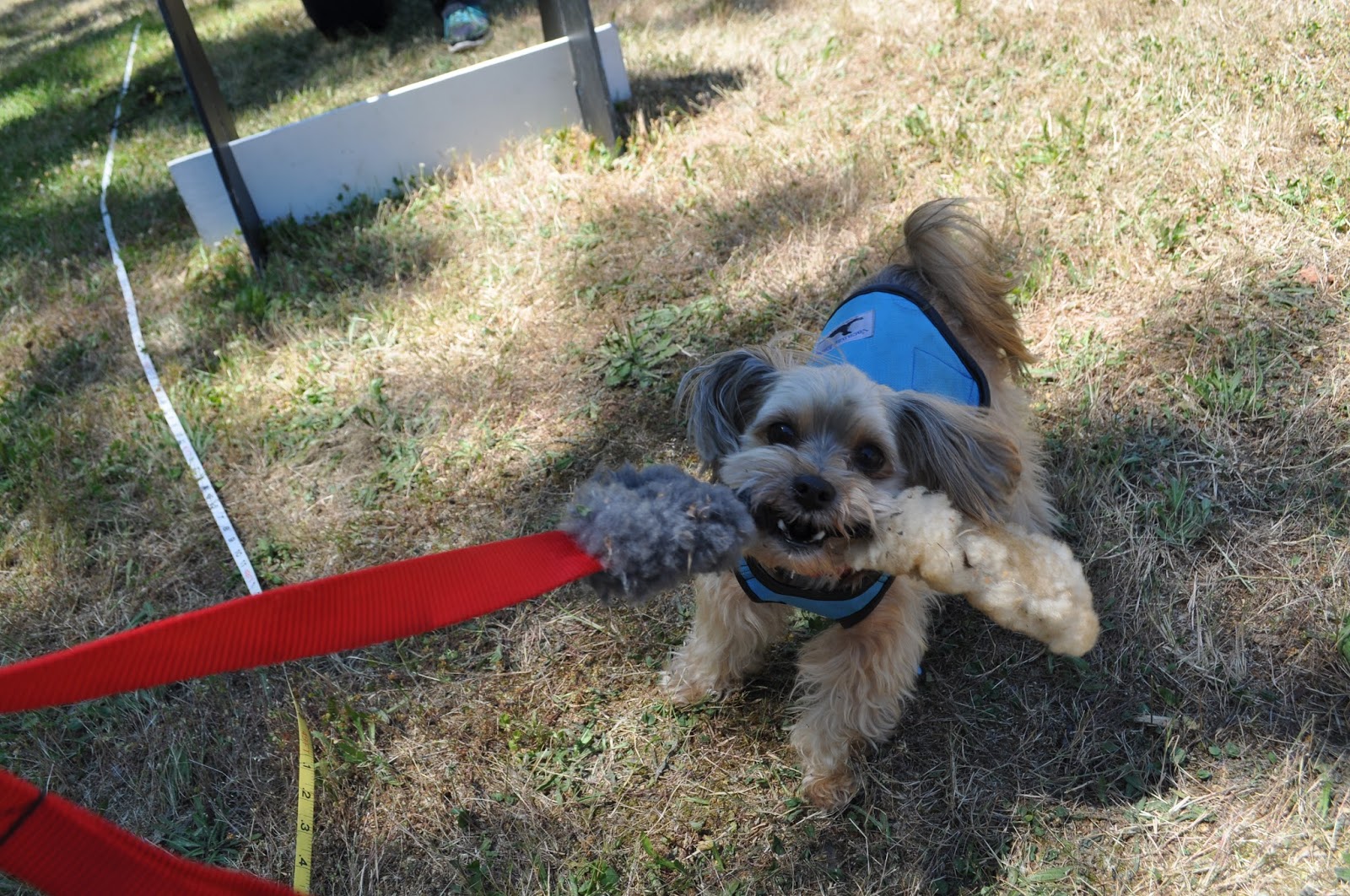 It's free to watch (dog treats or food donation encouraged). I brought along some Jones chews to donate. And five dollars to try out the various sports (scent work, carting, barn hunt, clicker training, flyball and agility). They also provide yellow ribbons for the dogs that need more space.