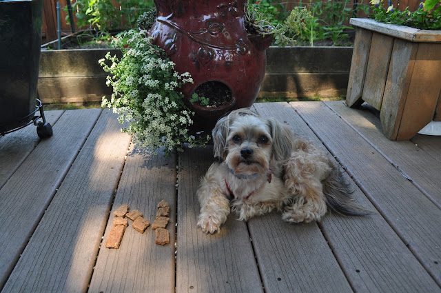 I think they would work great for bigger dogs to take hiking as an energy boost or as a special treat. For small dogs though, they're not ideal. When we hike, Mr. N gets rewarded frequently for recall, not going crazy over other dogs or squirrels and checking in, and these bars are simply too unwieldy for that purpose.