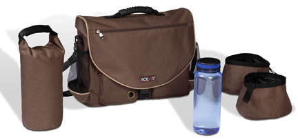 The organizer bag comes with a 1-liter water bottle, a 10-cup food storage bag, two collapsible travel bowls and a bag dispenser with bags. The bowls and storage bag are too big for Mr. N so I didn't test them out. I think his ears would probably get wet from drinking out of the bowls. They'd be a convenient option for bigger dogs though.