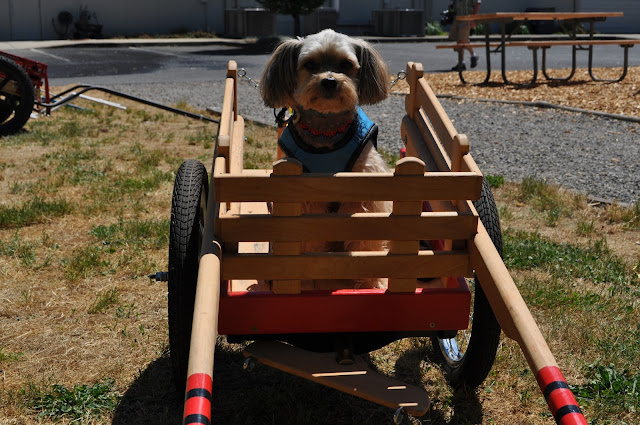 We headed over to the carting booth where (as expected), we were told that there were no carts for Mr. N's size. Instead, one of the Bernese Mountain Dog Club volunteers pulled Mr. N around as he sat regally for his photo.