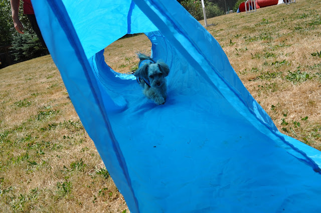 Clackamas County Dog Services holds a dog sports demo day every year as a fundraiser for the shelter dogs. I was originally just going to spectate with Mr. N. After a two-hour class, I didn't expect him to want to do any more work. He seemed perky enough and there weren't that many other dogs there so I ended up signing him up.
