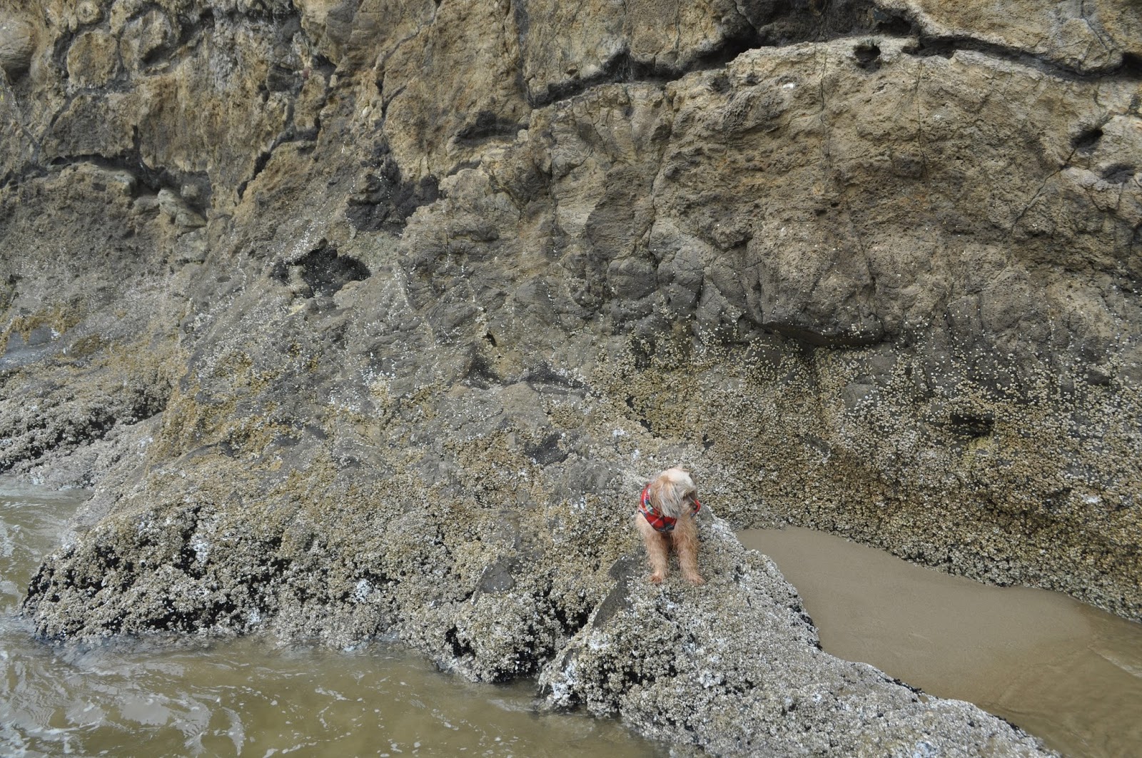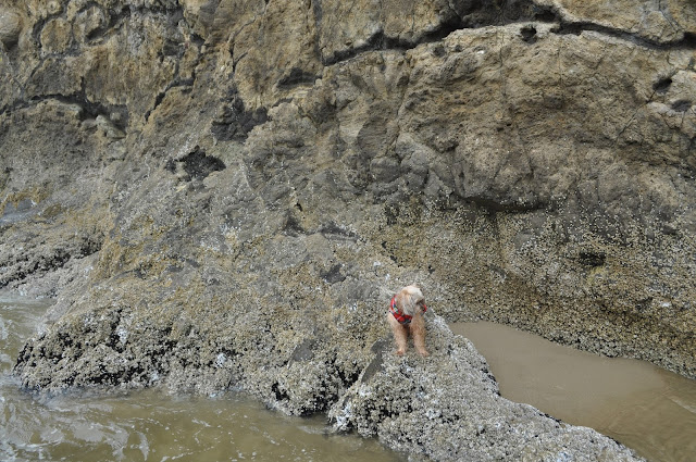 Uh oh. Mr. N is trapped by the incoming tide (no dogs were harmed in the making of this photo)! I "rescued" him and he went off to solicit sympathy from strangers.