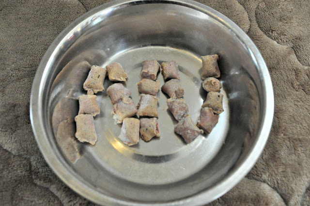 The Raw Bites for dogs come in chicken, beef, turkey, lamb, duck, venison, rabbit and tuna. Mr. N is currently eating the venison. He evidently approves because it's been about two weeks and he has eaten every single meal on time. He has been prone to skipping breakfast this hot summer. The Instinct is nutrient dense and high quality. Mr. N has been eating smaller quantities than with his previous food.