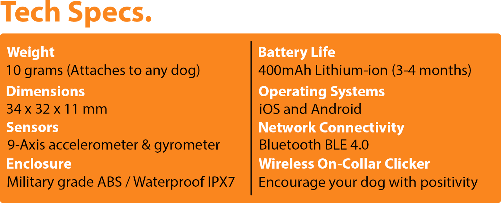 AMPT Animal reached out to us and their monitor fulfilled both requirements. It's 10 grams and Mr. N had no trouble bounding about with the prototype on his collar during an epic rainy weekend. You can use the monitor to track, analyse and set daily walk and play goals for your dog. It also comes with a wireless on-collar clicker and no, your dog can not self-reward. Mr. N tries with normal ones.