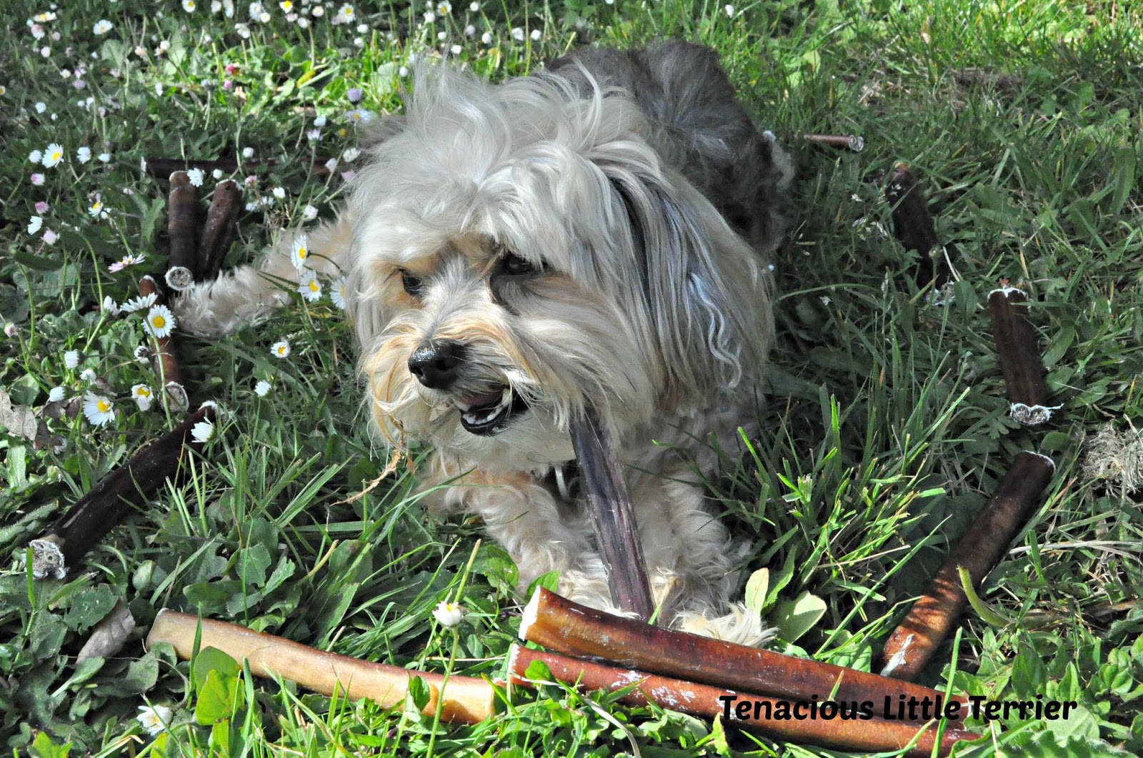 If your dog would like to partake in this bliss (sunny weather not included), here's your chance. We're giving away a bundle of 15 6'' bully sticks to one lucky dog! Bully Bundles has also generously provided a coupon code. Save ten percent with "tenaciouslittleterrier."