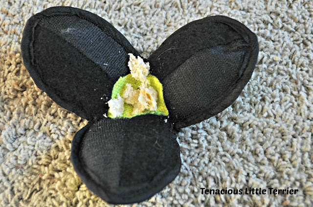 One of the latest additions to our training tool box is the Lotus Ball from Clean Run (they sell other food stuffable toys as well). It's a three part ball that is lined with velcro so you can stuff food inside it. Dogs can either rip it apart themselves which appeals to their hunting instincts or they can bring it to you to be opened which is the method that Mr. N prefers.