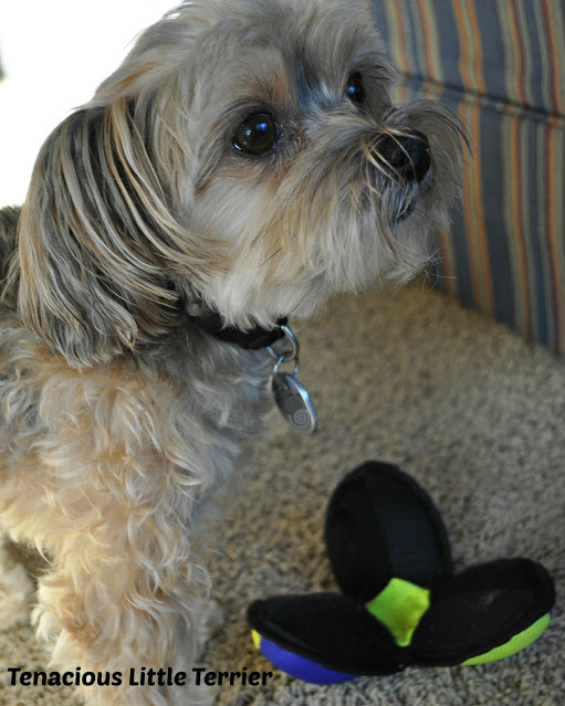 Mr. N has very little interest in balls but once he saw that the ball had food in it, he was much more willing to go chase after it and bring it back to be opened. He will retrieve but usually he finds it boring after a half-dozen throws.