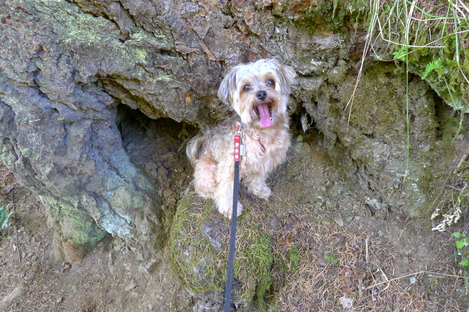 Mr. N likes to create his own switchbacks. I have to remind him to stay on the path. I don't know why people worry about little dogs maneuvering hiking trails. If they're reasonably athletic, I don't see how most trails would give them trouble. Mr. N is very good at going between, under or over various obstacles. He can also jump three feet at least (he used to jump out of his play pen all the time).