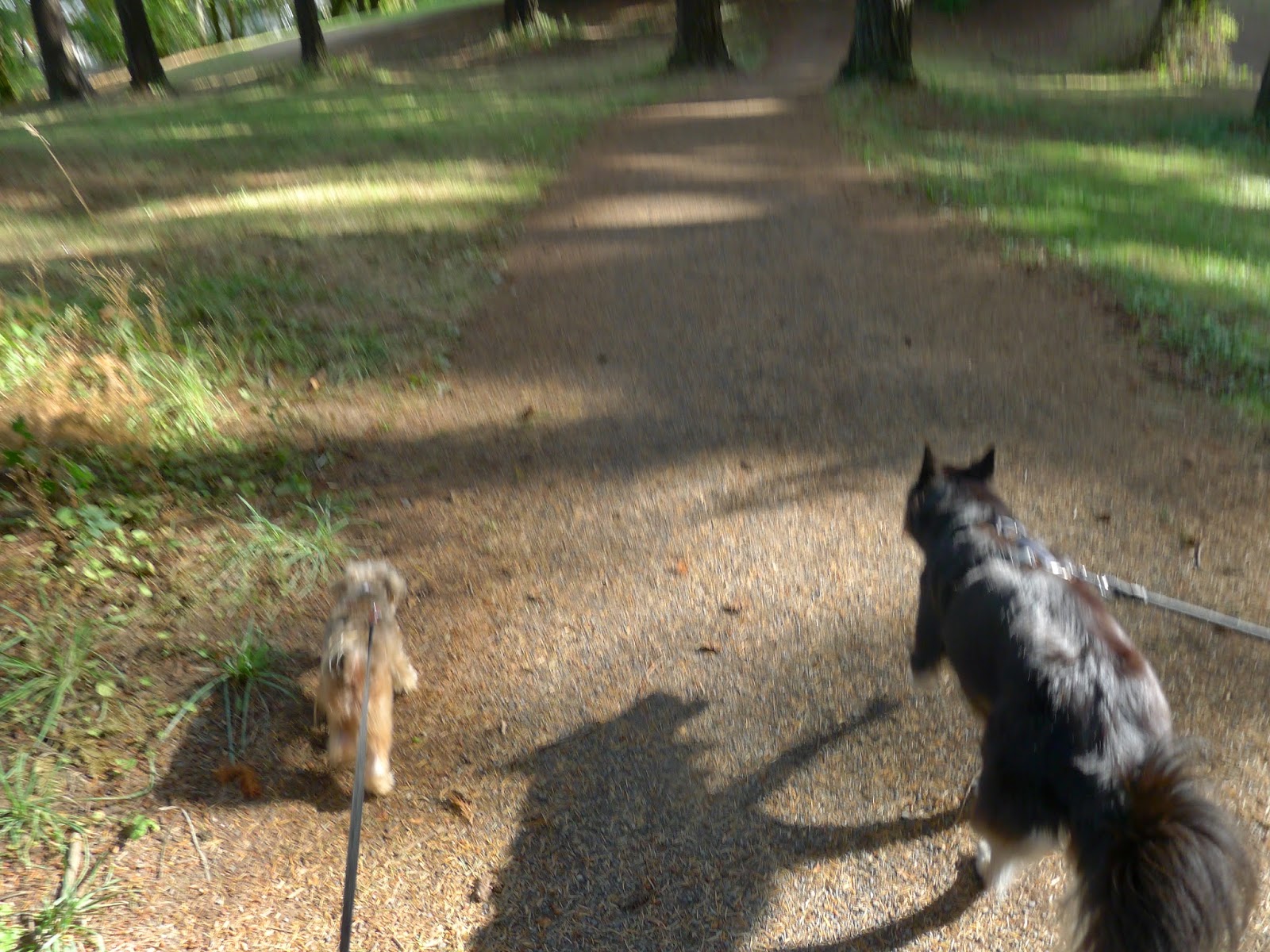 Once they were walking, Mr. N totally forgot about old grudges and started bossing around Sage like usual. Sage had to leave after our walk but the dogs plan to get together soon. Mr. N says thanks for the visit!