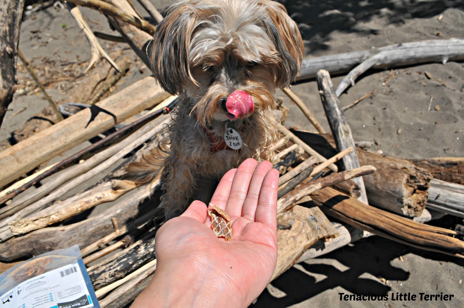 The duck jerky was an instant hit and we used it up pretty rapidly for recall exercises and tricks training. It's on the harder side texture-wise but it's pretty easy to break up into small pieces (a little hard to break into tiny pieces) and Mr. N thought it was worth a speedy recall.